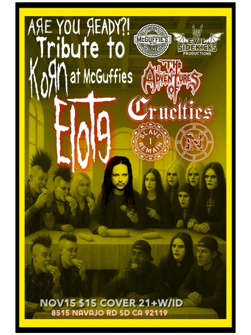 Elote (KORN Tribute) w/ Nechesch, Cruelties, Slave I Remain, The Adventures of & DJ Sanguine (Dark wave Post Punk & Dark Electric)