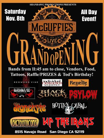 GRAND OPENING Redwood Vine, IDS, RENETTE, Blackout, Black Sunday, Psylow, Stonekyte, Rotten Cabal, Big Tooth Comb & Up the Irons.